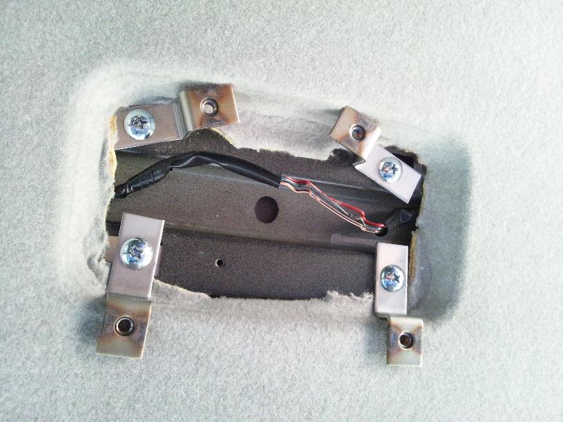 4箇所の穴位置に取り付ける金具がルーフライニングに干渉しないように、ルーフライニングを切り取る必要があるのですが、今後ルームランプを元に戻しても大丈夫なように、切り取りは必要最小限としました。