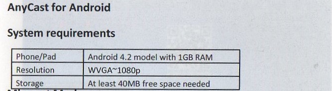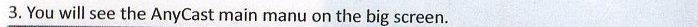 さて、マニュアルの接続方法に従ってテレビにAnycastをつなぎ、USBの電源を入れてみると、、、画面に表示されたメインメニューがマニュアルと全然違う!!