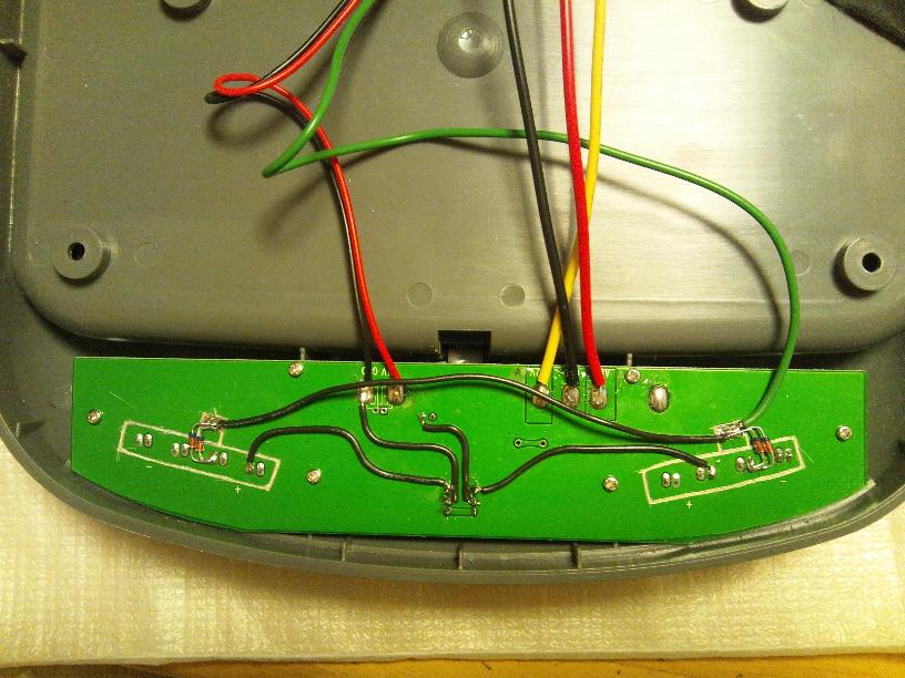 こちらはLED側。3箇所のパターンカットと赤線2本の追加です。