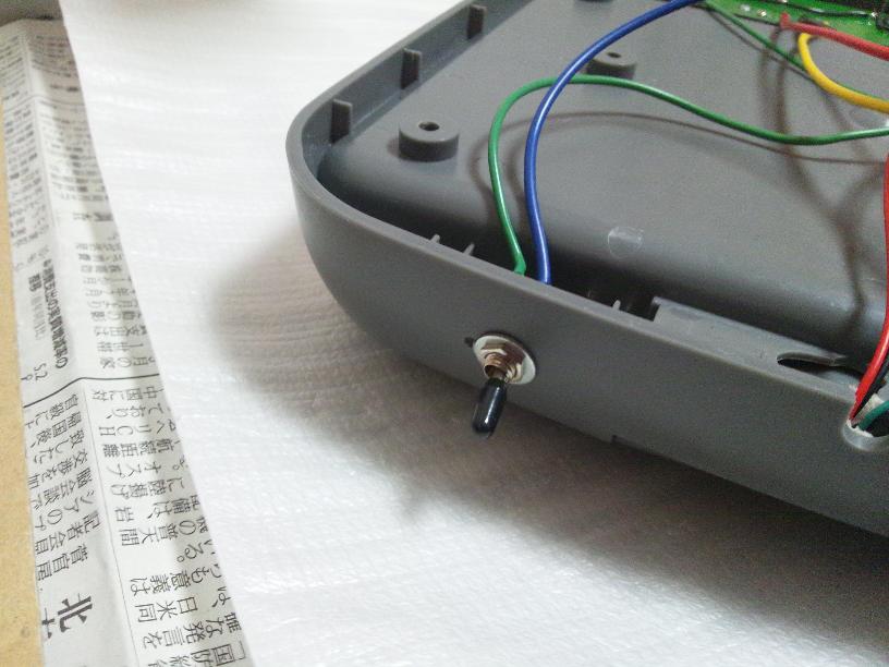 更に、ON/OFFスイッチを後付けしました。このスイッチが無いと、ドアを開けたときにLEDが点灯しっぱなしになりますので、長時間ドアを開けておくときには照明を切れるようにしました。