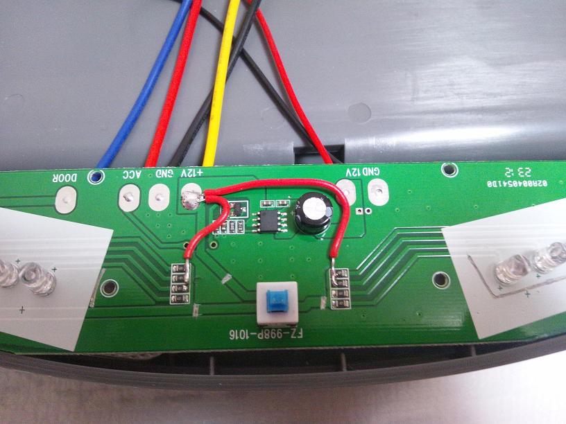 この写真では上から12V(赤茶色の配線)、DOOR(黒っぽく見える深緑の配線)、GND(茶/黒の配線)でした。